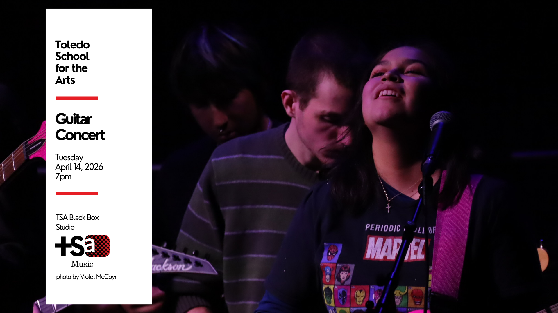 Spring Guitar Concert Tuesday, April 14 7pm TSA Black Box Studio Studios: A. Munson & M. Heer Purchase Tickets Here