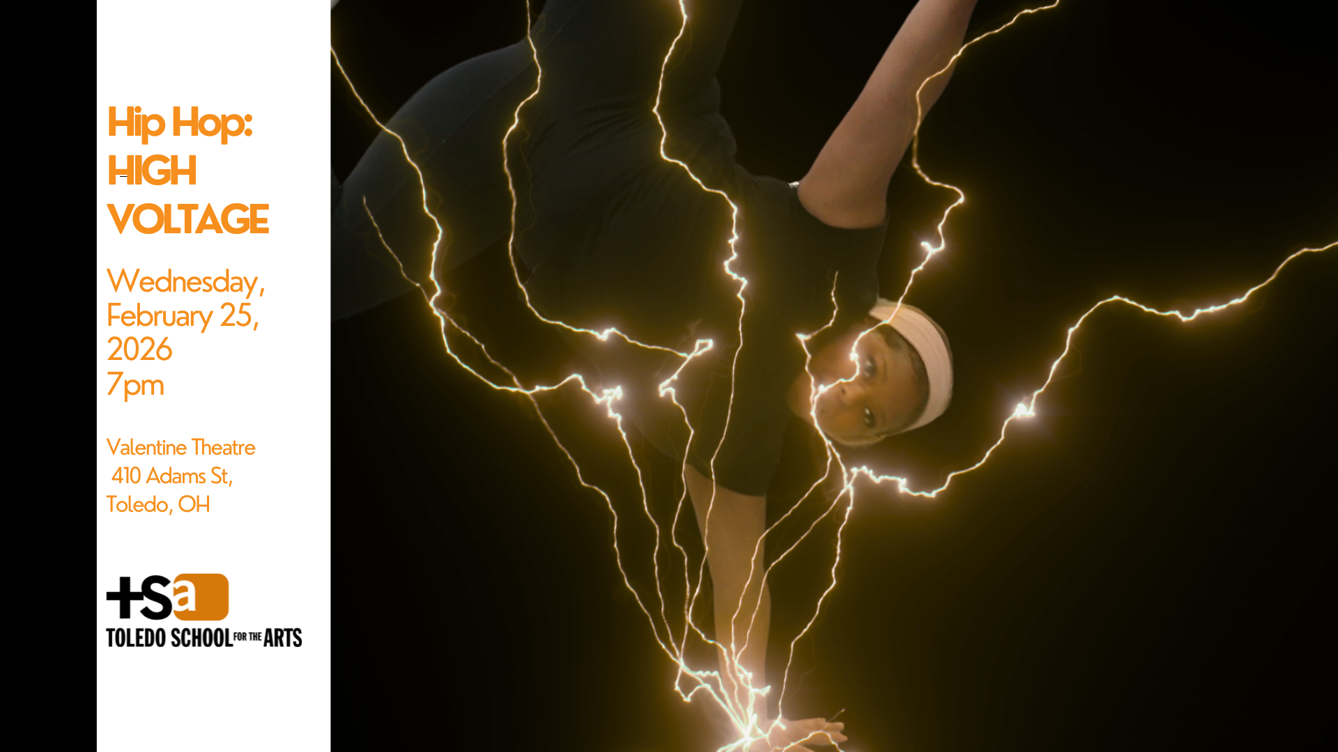 Hip Hop: High Voltage Wednesday, February 25, 2026 7pm Valentine Theatre Enjoy evening of exciting and energetic dance performances as TSA students present Hip Hop High Voltage! Order Tickets Here